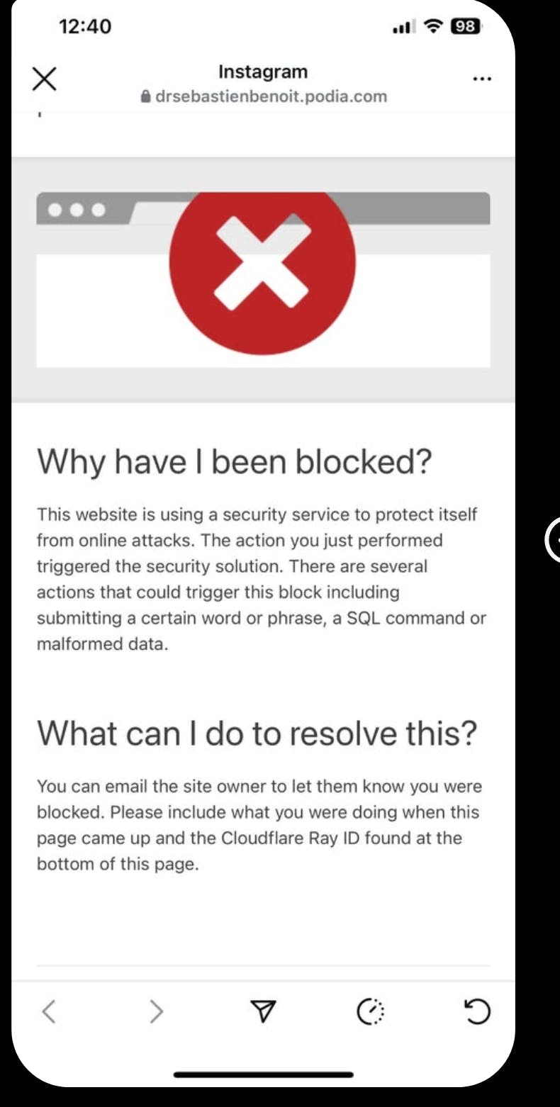 some of my followers on instagram what to go on podia to purchase my course and they are blocked, and receive this message ( attached)